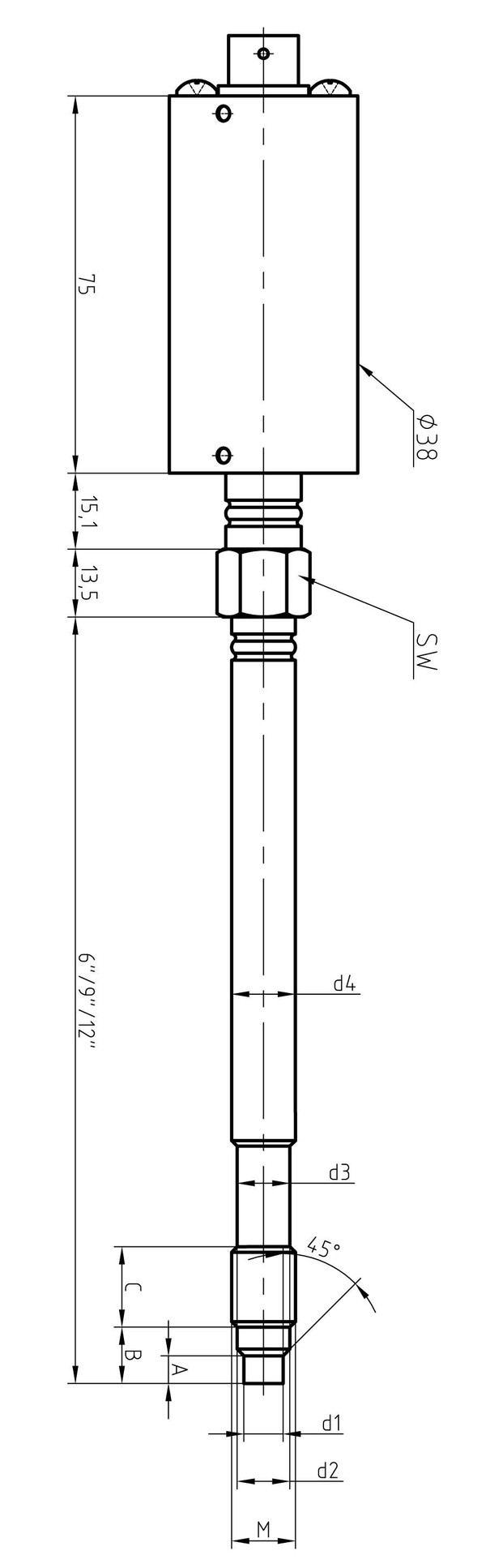 工艺连接:1/2”-20 UNF,M14× 1.5,M18× 1.5,G3/4(客户定义)